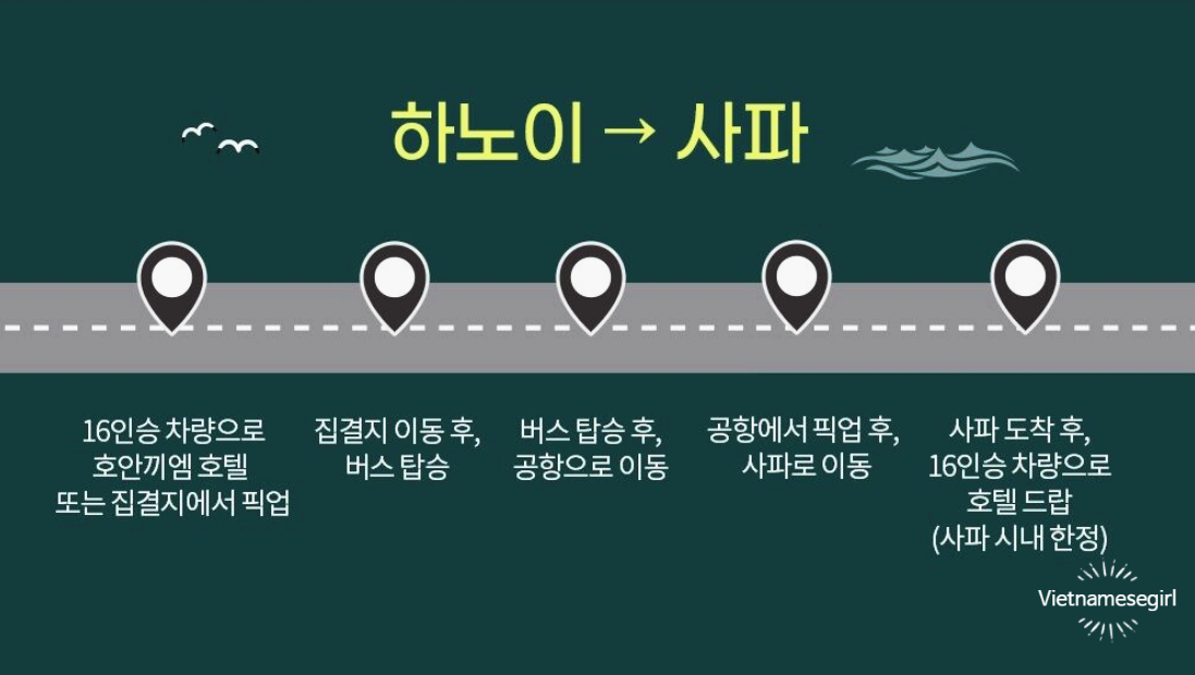 하노이에서 사파까지 약 5~6시간 정도 소요되는 여정이에요. 피곤한 이동 시간을 최대한 편안하게 보내고 싶다면 슬리핑 캐빈 버스가 제격이에요. 창밖으로 펼쳐지는 베트남 북부의 풍경을 감상하며, 설레는 사파 여행을 시작해 보세요.