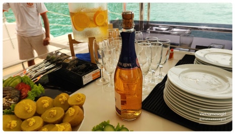 점심 시간에는 선상 BBQ 식사가 준비돼요. 바다를 바라보며 식사를 즐길 수 있어 분위기가 한층 더해져요. 선셋 투어를 선택하면 노을이 물드는 시간대에 맞춰 이동해 다른 색감의 나트랑 베이를 볼 수 있어요.