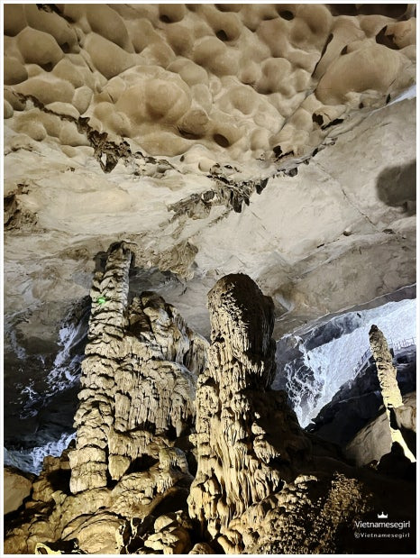 그 뒤 가장 먼저 향한 곳은 성소 동굴 (Sung Sot / Surprising Cave) 으로, 내부는 웅장한 석회 구조가 인상 깊었어요. 조명이 잘 배치되어 있어서 사진 찍기에도 좋고, 동굴 곳곳의 기둥, 종유석이 자연의 장엄함을 보여주더라고요.